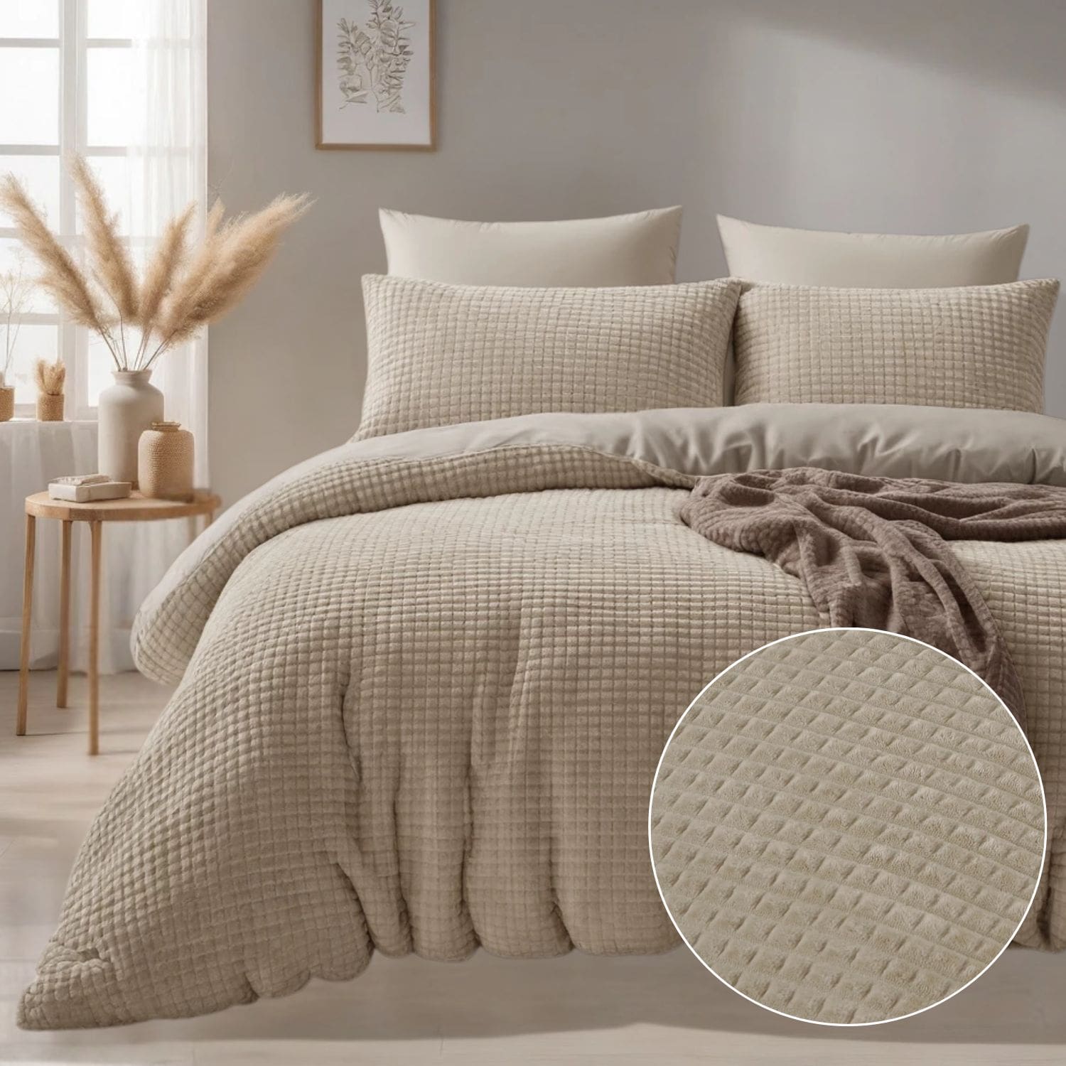 Droomtextiel Teddy Dekbedovertrek Block Beige - 240x200/220 cm