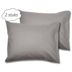 Droomtextiel Percale Katoen Kussenslopen Grijs - 60x70 cm - 2 Stuks - Hoogwaardige Kwaliteit