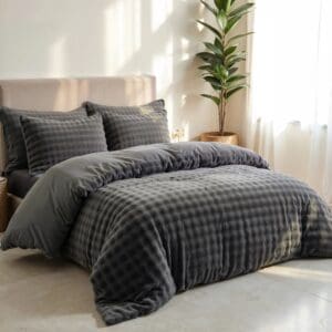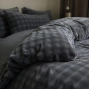 Droomtextiel Zachte Teddy Dekbedovertrek Block - antraciet- 140x200/220 cm - Super Zacht