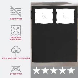 Sleeps Luxe Dubbel Jersey Hoeslaken Zwart - 160 x 200 cm - 100% Hoogwaardige Katoen - Hoge Hoek - Strijkvrij
