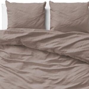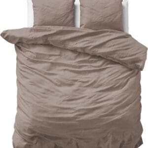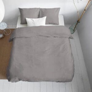 Droomtextiel Dekbedovertrek Katoen-Satijn Uni Taupe Tweepersoons 200x200/220cm - Hoogwaardige Kwaliteit Super Zacht