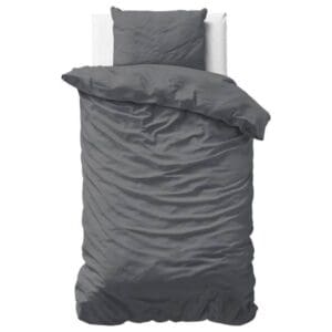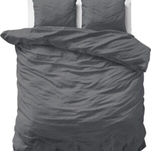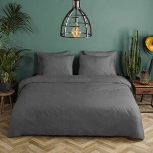 Droomtextiel Dekbedovertrek Katoen-Satijn Uni Antraciet - 140x200/220cm - Hoogwaardige Kwaliteit Super Zacht