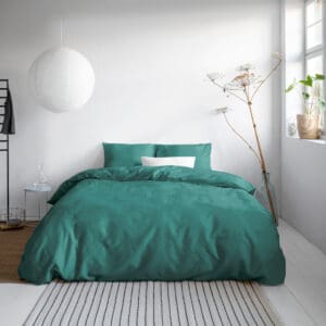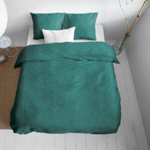 Droomtextiel Dekbedovertrek Katoen-Satijn Uni Groen - 140x200/220cm - Hoogwaardige Kwaliteit Super Zacht