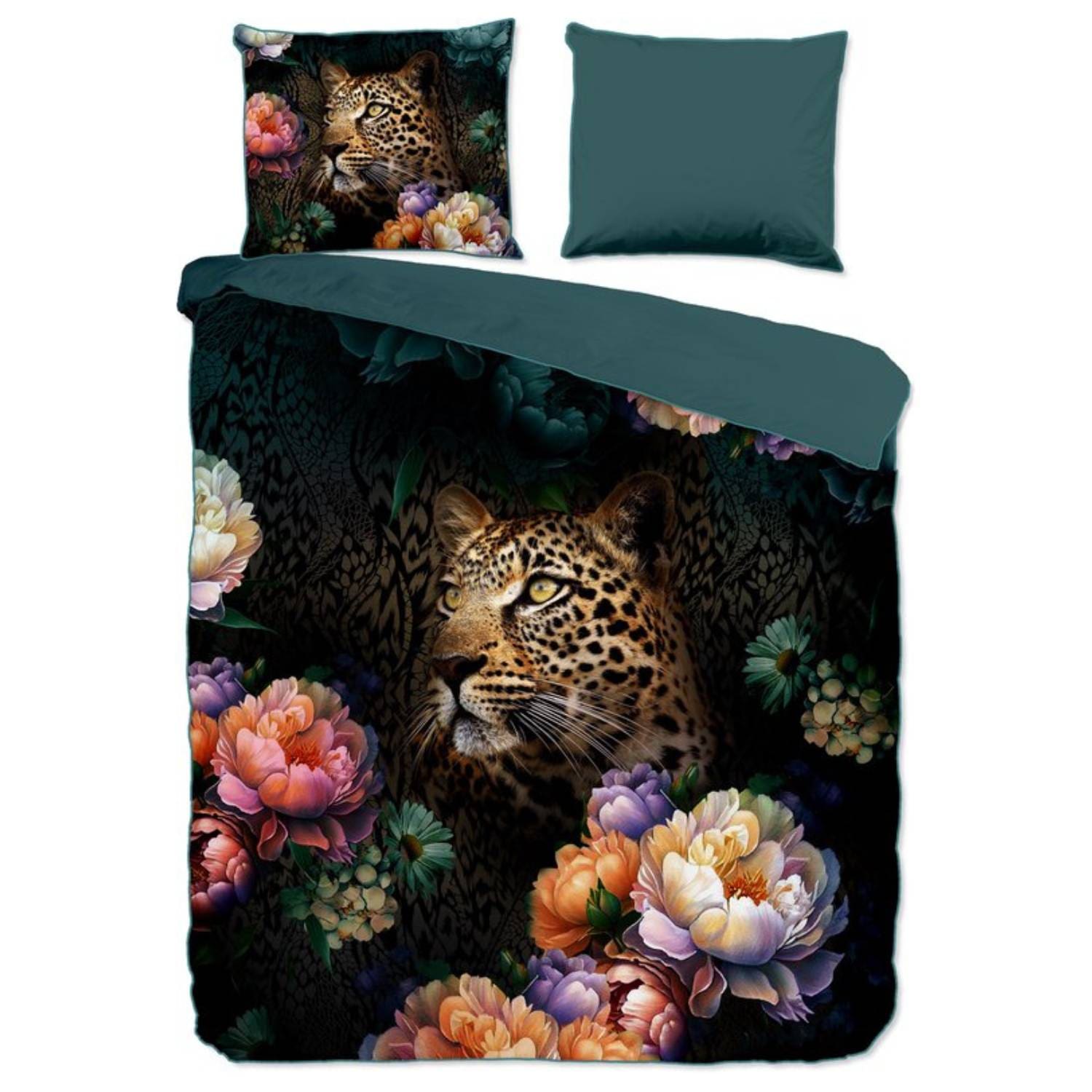 Descanso Dekbedovertrek bloemen met een luipaard - Multi - 240x200/220 cm - Katoen Satijn