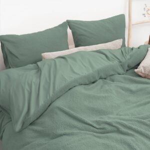 Droomtextiel Teddy Dekbedovertrek Jade Groen - 140x200/220 cm - Luxe Teddystof - Heerlijk Zacht