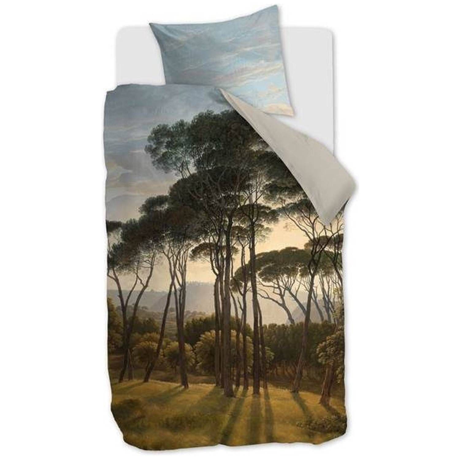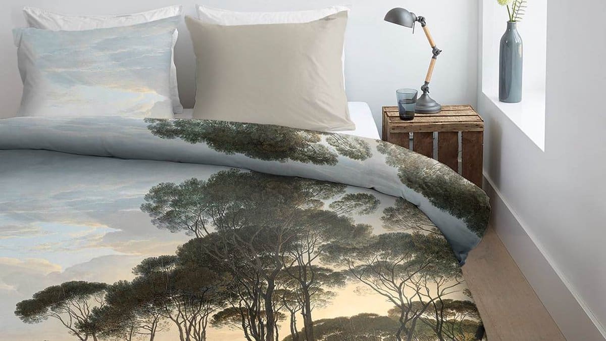 Heb je ooit gedroomd van een ontspannen vakantie tussen de pijnbomen in de Italiaanse heuvels? De illustratie op het Ambiante Nature dekbedovertrek brengt dat droomgevoel naar je slaapkamer. De mix van ingetogen zandtinten en frisse blauwtinten benadrukt de groene naaldbomen en geeft je interieur direct een luxe uitstraling.