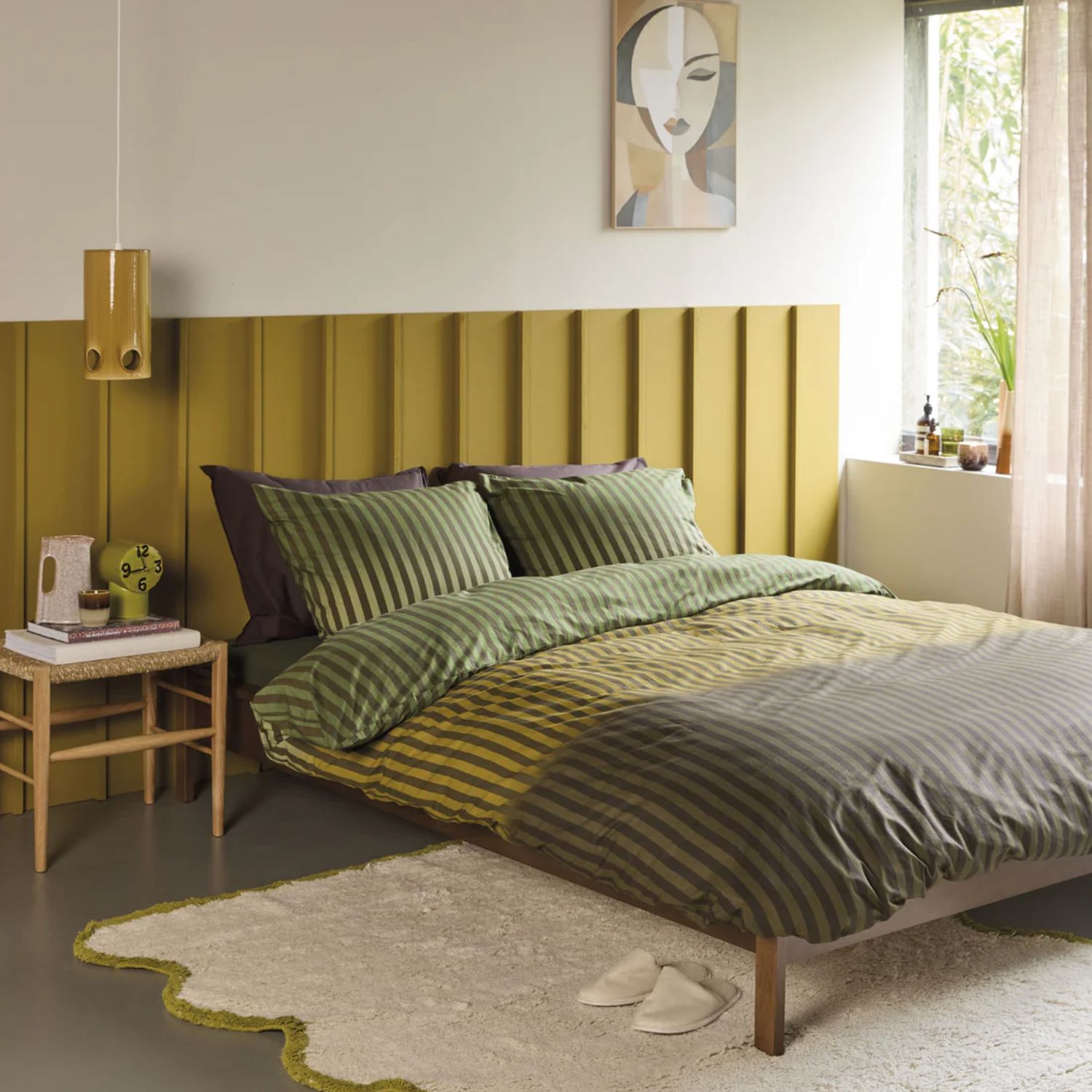 Geef je slaapkamer een moderne en stijlvolle uitstraling met het Beddinghouse Jonah dekbedovertrek. Het overtrek heeft een moderne strepenprint opgebouwd uit verschillende kleurvlakken die subtiel in elkaar overlopen, wat zorgt voor een trendy, luxe en dynamische uitstraling. De effen achterzijde van het dekbedovertrek en de bijbehorende kussenslopen maakt het mogelijk een verzorgde en luxe omslag te creëren. Het Jonah dekbedovertrek is vervaardigd uit 100% katoen, een ademend en vochtabsorberend materiaal dat bijdraagt aan een comfortabele nachtrust. Het katoen voelt zacht aan, is stevig en slijtvast, en behoudt de print ook na veelvuldig wassen. Dankzij de dubbel doorlopende instopstrook met extra lengte blijft het dekbedovertrek netjes op zijn plaats, ook bij langere dekbedden. Zo combineer je gemak met een verzorgde uitstraling.