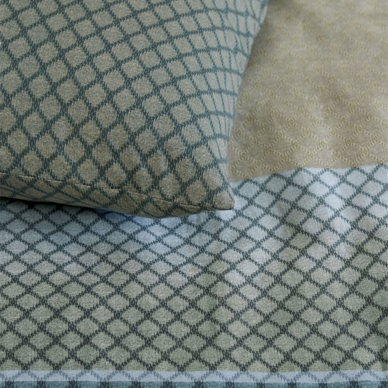 Het Beddinghouse Riven dekbedovertrek in blauw valt op door een grafisch banenontwerp met een fijn ruitpatroon. De warme kleurstelling geeft de slaapkamer direct sfeer en zorgt voor een eigentijdse twist binnen een landelijke stijl.