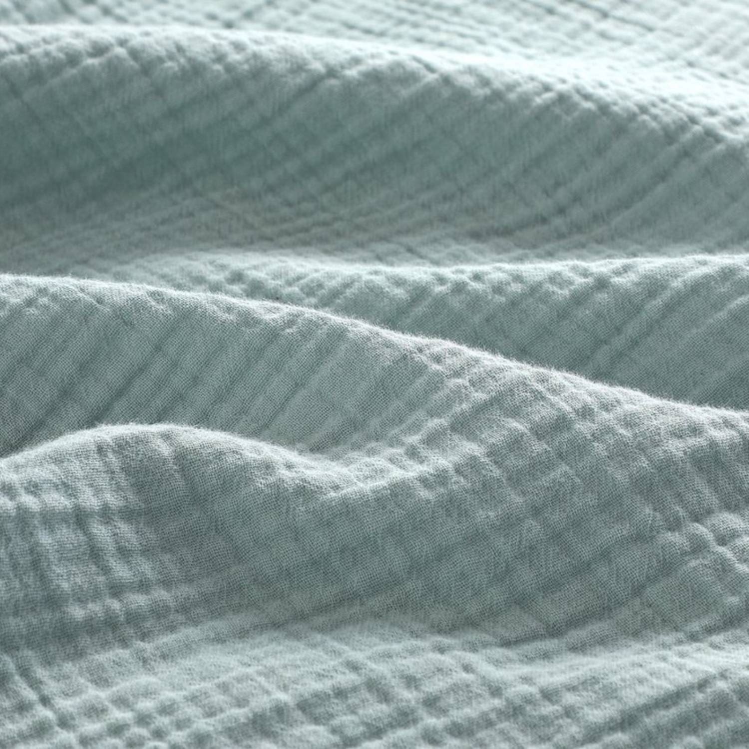 Mousseline, ook wel double gauze genoemd, is een unieke stof die bestaat uit twee fijne lagen los geweven katoen. Deze zijn op enkele punten subtiel met elkaar verbonden, waardoor een karakteristieke, natuurlijke kreukstructuur ontstaat – het bekende crinkle-effect.