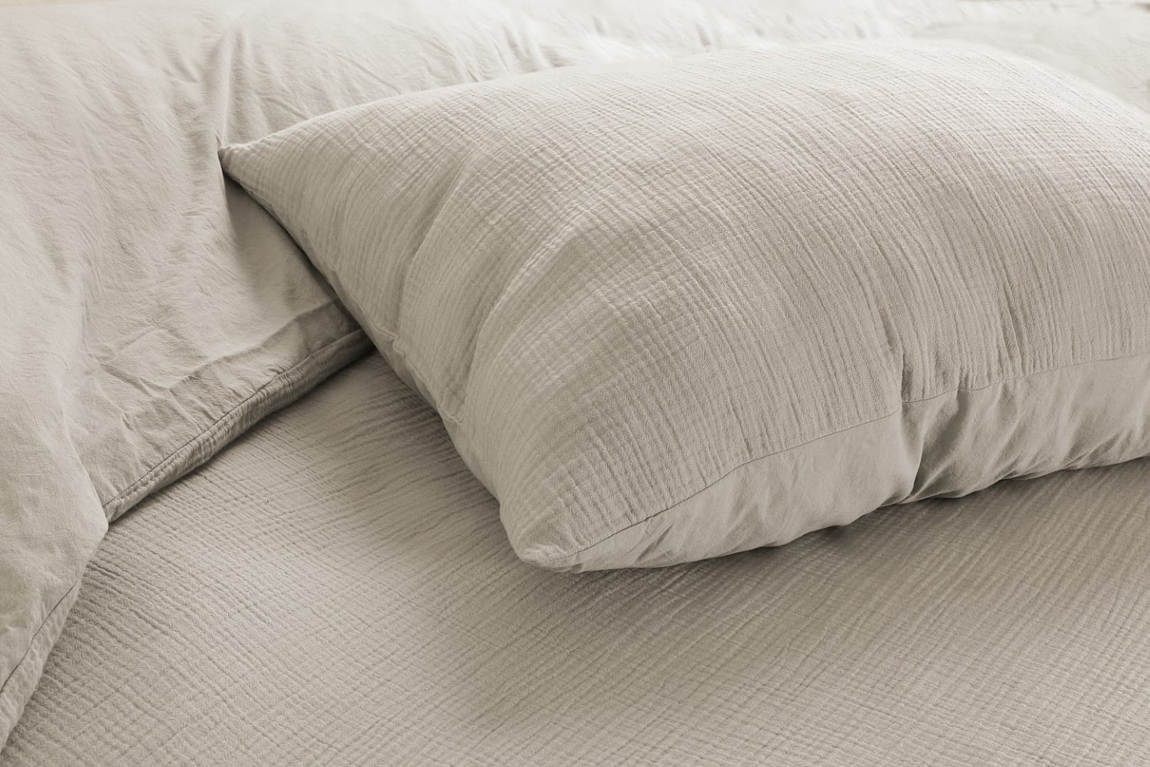 Bovenkant: mousseline katoen – luchtig, soepel en stijlvol gekreukt