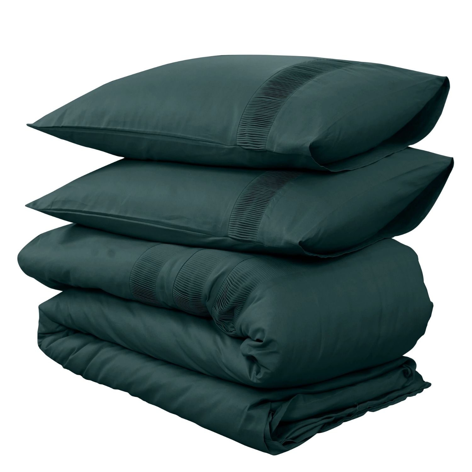 Het dekbedovertrek is vervaardigd uit 100% hoogwaardig katoen. Dankzij de combinatie van T144 Ránforce katoen en percaline voelt de stof heerlijk zacht aan, is hij ademend en biedt hij optimaal slaapcomfort – het hele jaar door.