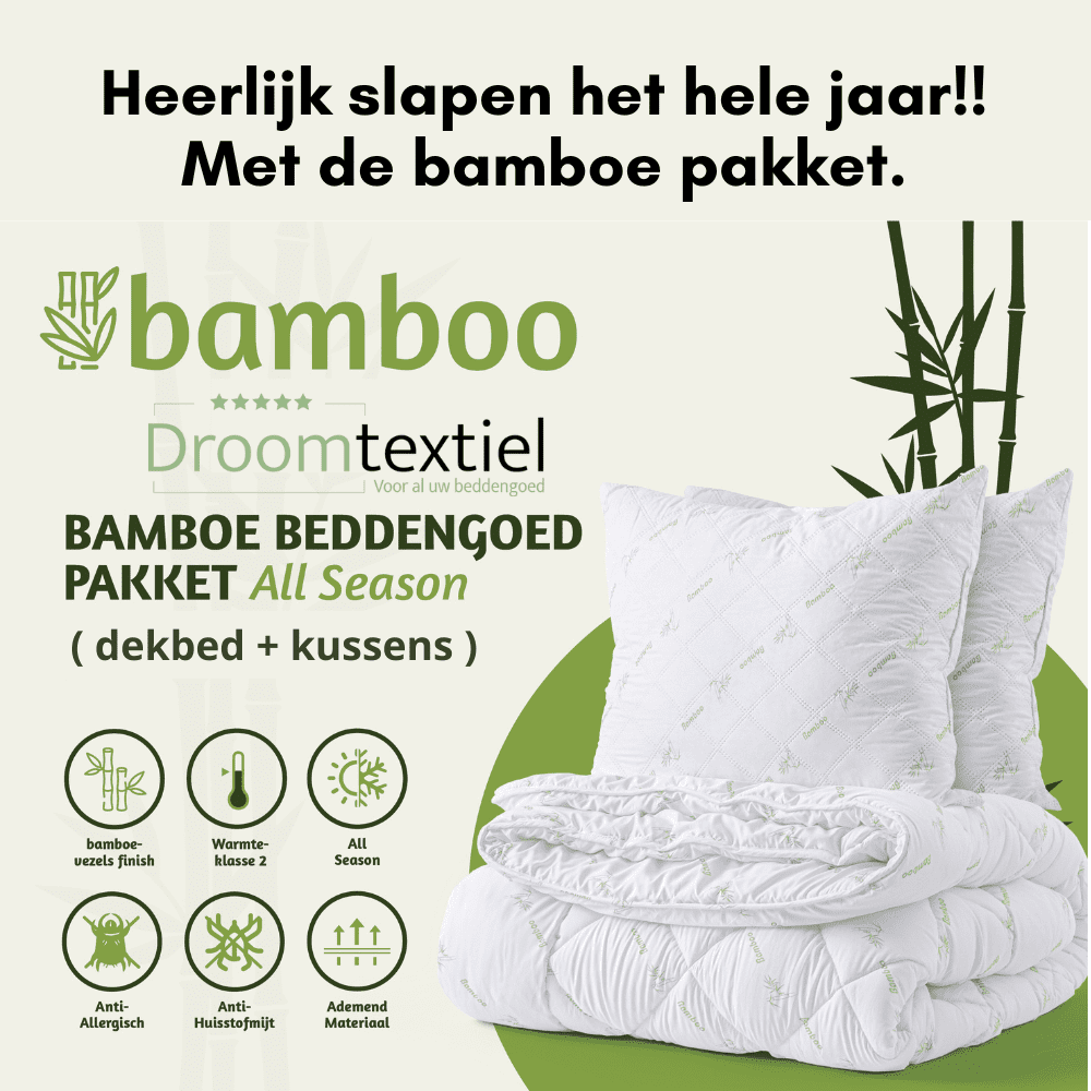 Het Droomtextiel Bamboe Beddengoed Pakket – bestaande uit het Bamboo Dekbed en Bamboo Kussen – biedt jou: