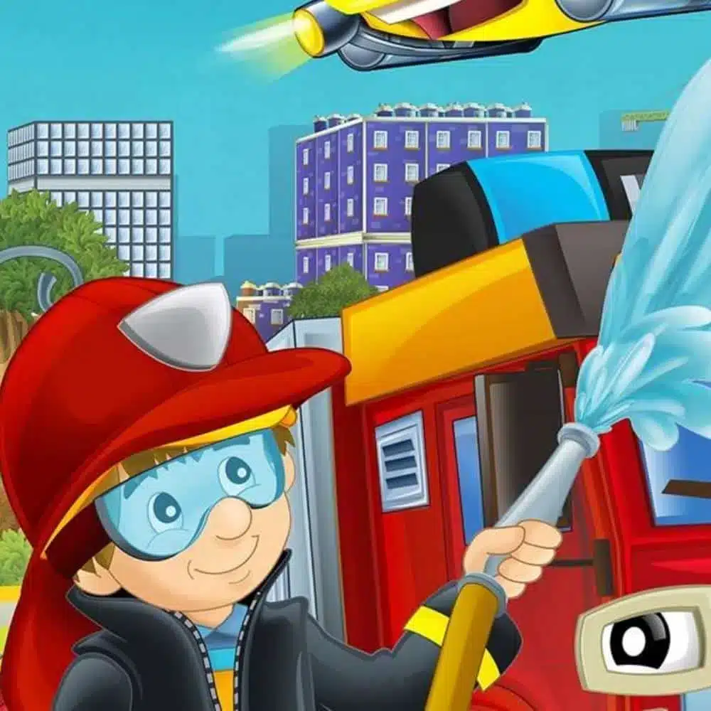 • Design: Brandweerman met brandweerwagen, blushelikopter en brandgerelateerde print