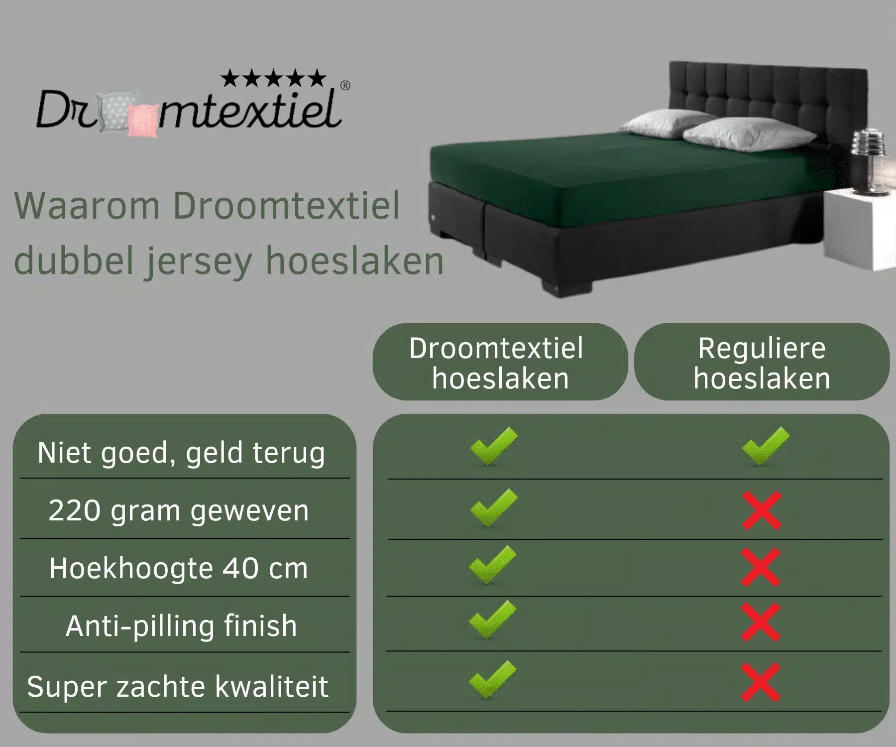 Val je ’s ochtends vaak minder fris uit bed door een klam hoeslaken of een losse hoek die steeds afzakt? Je bent niet de enige. Steeds meer mensen kiezen voor een luxe, duurzaam én comfortabel hoeslaken dat moeiteloos jouw nachtrust verbetert. Met het Droomtextiel Dubbel Jersey Hoeslaken ervaar jij iedere nacht een hotelkwaliteit-sfeer in je eigen slaapkamer. Ben jij klaar om elke ochtend energiek en zonder kreukels wakker te worden?