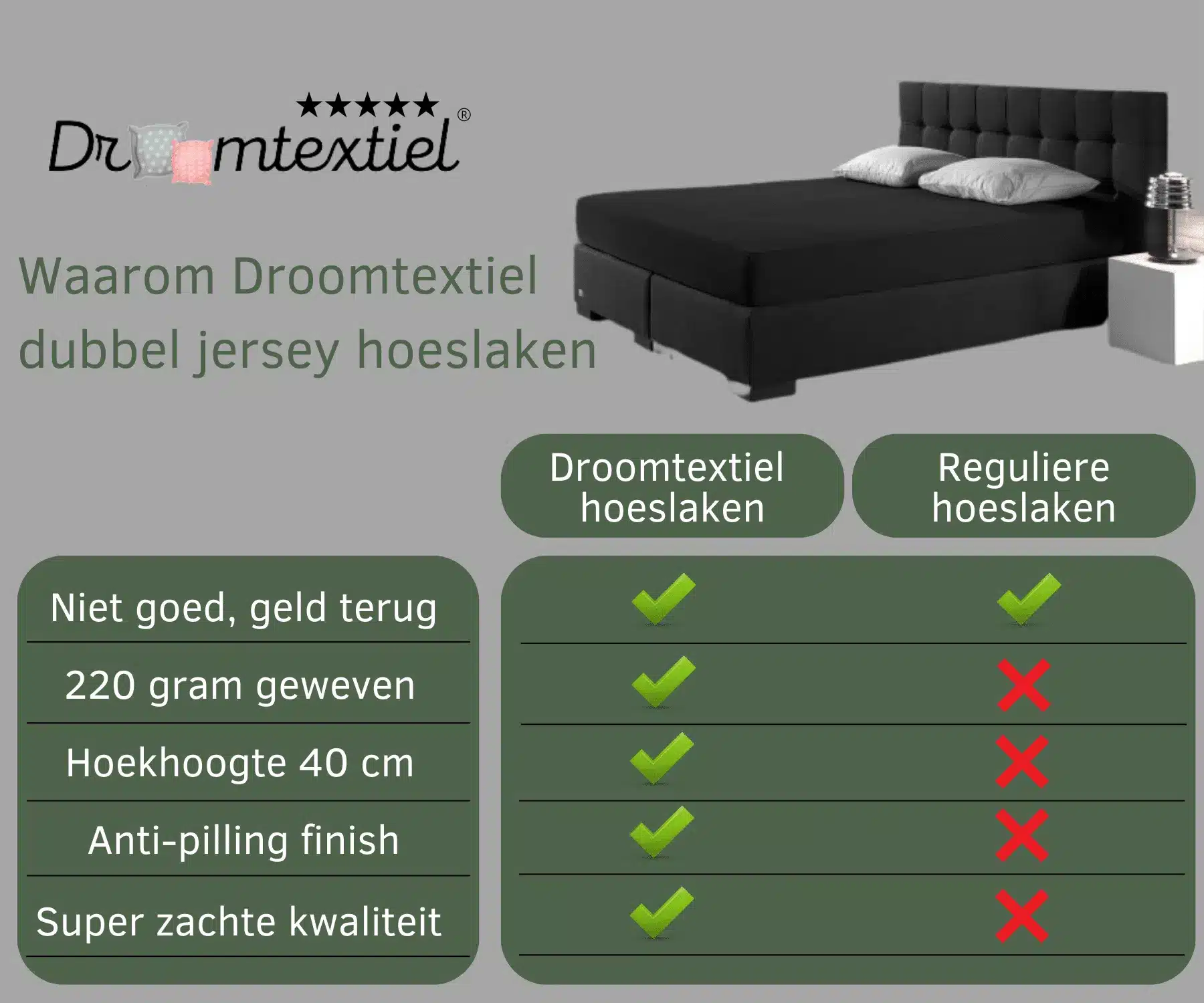 “Sinds ik dit dubbel jersey hoeslaken heb, slaap ik dieper en verschuift er niets meer. Eindelijk geen gedoe meer in de ochtend!” – Sophie uit Utrecht
