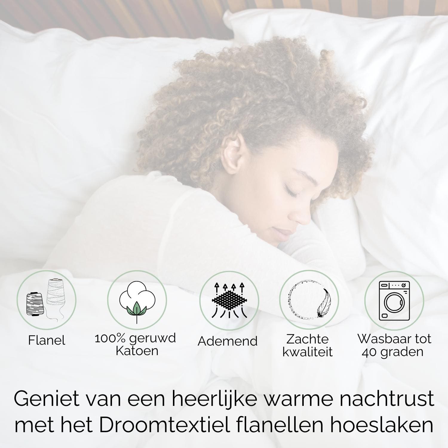 “Het strijkvrije flanellen hoeslaken is super praktisch. Ik was dagelijks mijn beddengoed en heb nooit meer gedoe met kreukels. Topkwaliteit en duurzaam geproduceerd, helemaal Droomtextiel!”
