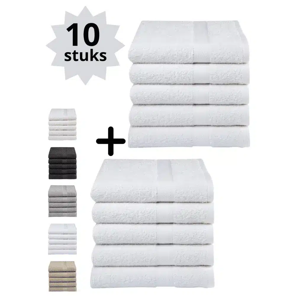 Kies de gewenste set (10 badhanddoeken) en geniet van professionaliteit en comfort in jouw badkamer.