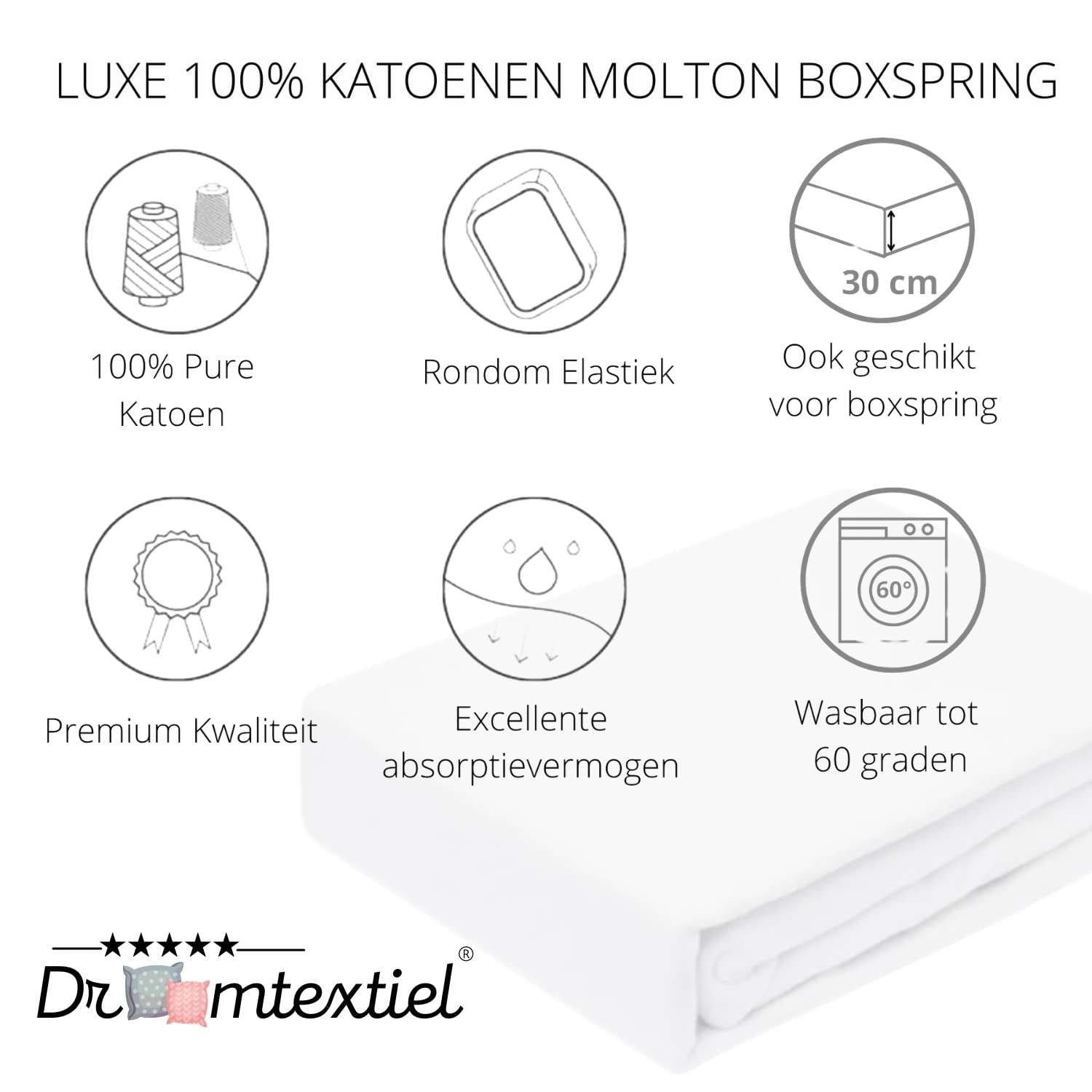 Met het Droomtextiel 100% katoenen molton hoeslaken kies je voor een luxe, duurzame en professionele oplossing die je matras beschermt en je slaapervaring naar hotelkwaliteit tilt. Dankzij de perfecte pasvorm, hoogwaardige stoffen en betrouwbare wasprestaties geniet je elke nacht van comfort en hygiëne.