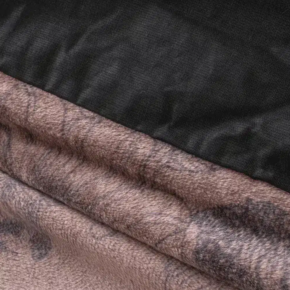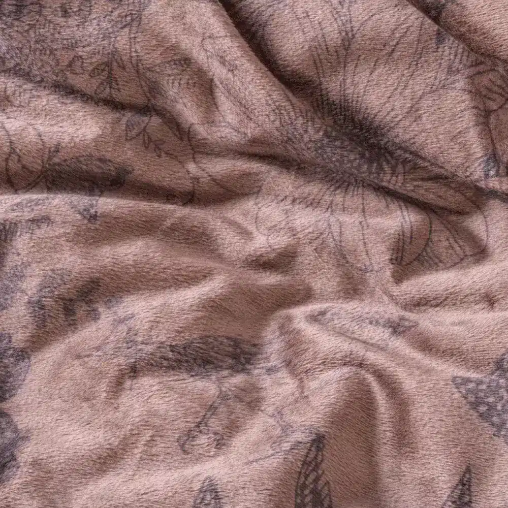 De voorzijde is gemaakt van 100% fluweel, 200 gsm, digitaal gedrukt met een botanische print van bloemen en vogels. De achterzijde is 100% katoen – zacht, ademend en antiallergisch. Samen vormen ze een combinatie die warmte en luxe in perfecte balans brengt.
