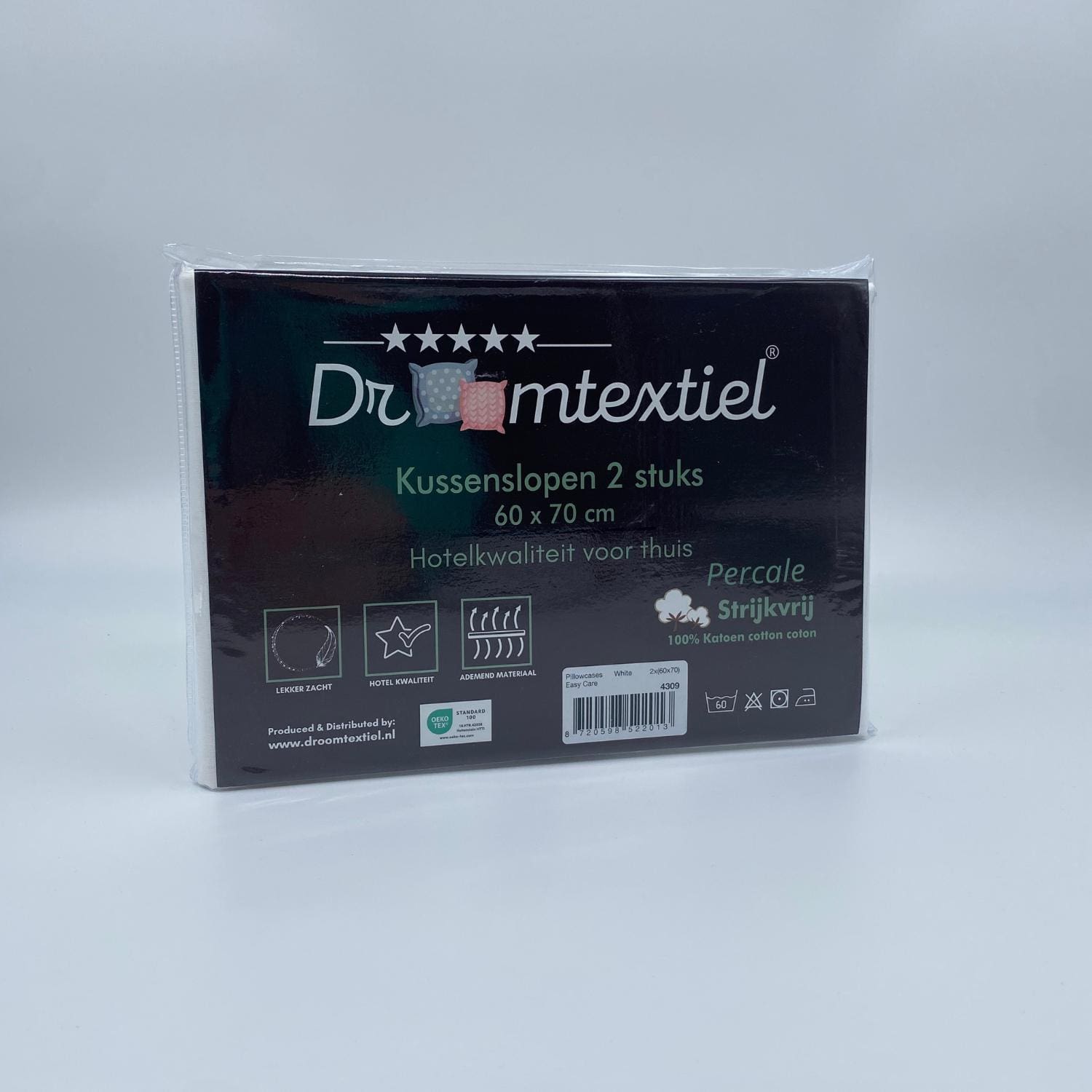 Droomtextiel staat voor kwaliteit die lang meegaat. Onze kussenslopen zijn OEKO-TEX Standard 100 gecertificeerd: geen schadelijke stoffen, dus veilig voor jouw huid en de planeet. Bovendien blijven kleur en vorm behouden, zelfs na vele wasbeurten op 60°C.