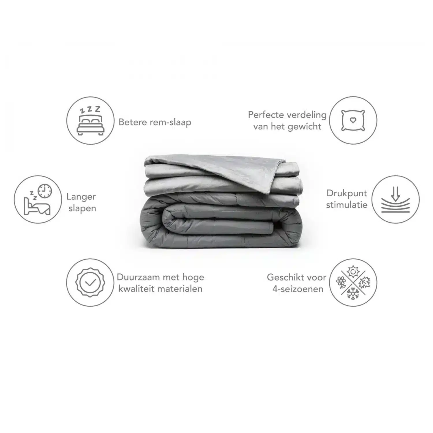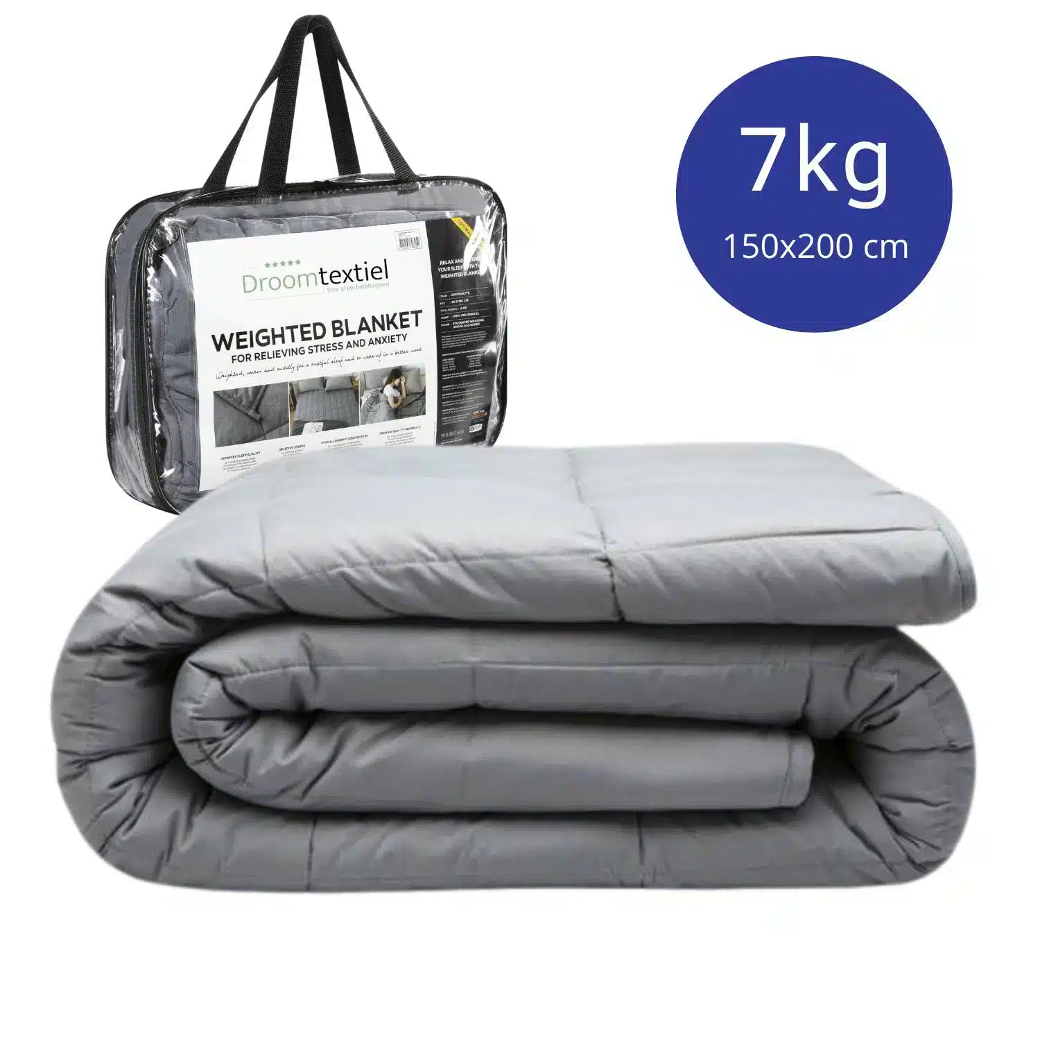 Kies een deken die ongeveer 10% van je lichaamsgewicht weegt. Bij 55–85 kg is 7 kg ideaal voor het beste effect.