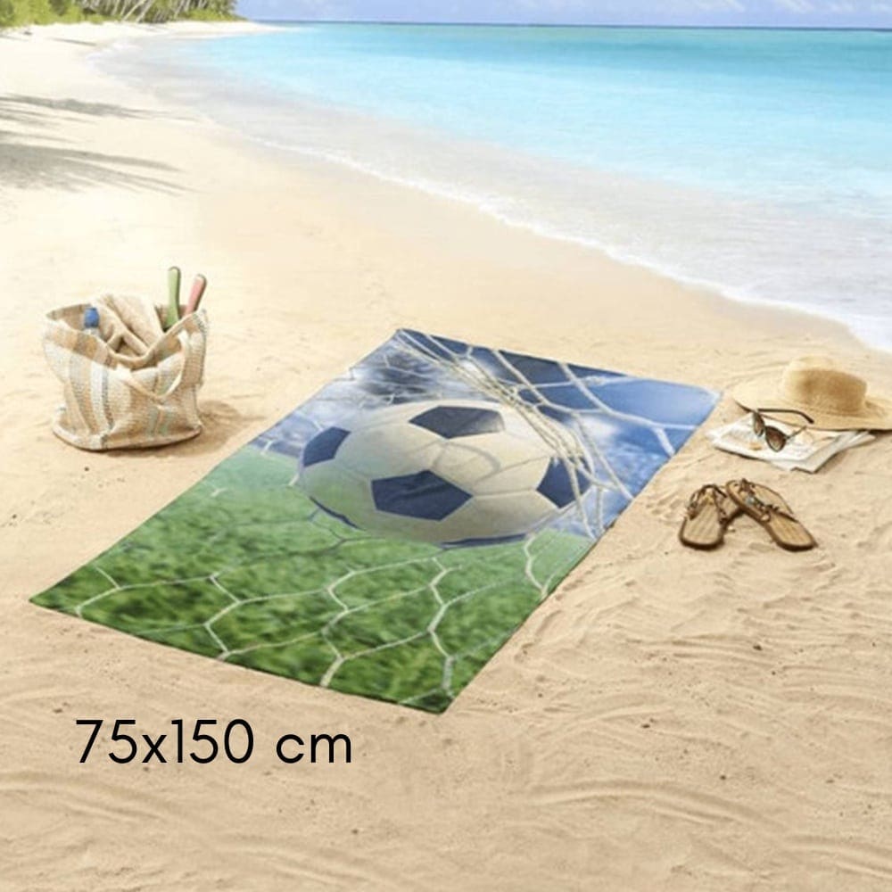 Voel de kwaliteit bij elke aanraking. Ons strandlaken is vervaardigd uit 100% polyester velours, een materiaal dat bekendstaat om zijn rijke uitstraling en lange levensduur. De levendige fotoprint van een gescoord doelpunt op een voetbalveld maakt dit laken niet alleen sportief en uniek, maar ook een ware eyecatcher op elk strand.