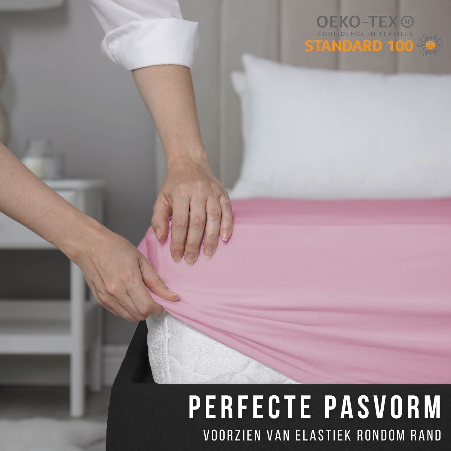 • Design: glad katoenen hoeslaken in neutrale roze tint