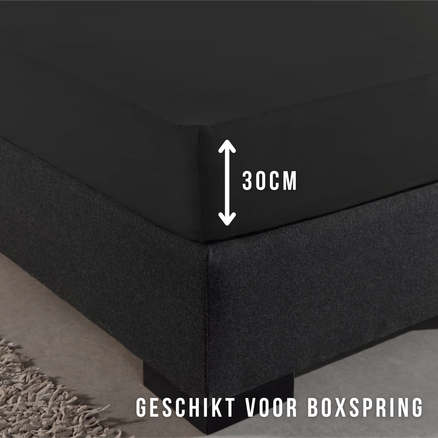 Zeker, dankzij de elastische hoeken van 30 cm past het hoeslaken perfect om een waterbed, boxspring of standaard matras.