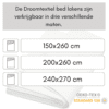Maten 90×200 cm • 150×260 cm • 200×260 cm • 240×270 cm
