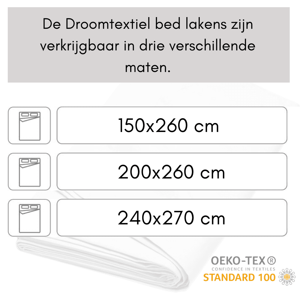 Onze missie? Bedlinnen creëren dat je niet na één seizoen, maar na véél seizoenen nog steeds met plezier gebruikt. Dankzij de slijtvastheid en stevige stiknaden gaat jouw Droomtextiel laken jarenlang mee. Bovendien zijn onze lakens OEKO-TEX Standard 100 gecertificeerd, wat betekent dat zevrije zijn van schadelijke stoffen. Zo slaap je niet alleen comfortabel, maar ook gezond en milieubewust.