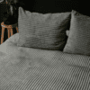 Wil je dat je bed direct in het oog springt? Kies dan voor warme, natuurlijke kleuren zoals zand, taupe of antraciet. Combineer met zachte plaids en sierkussens in contrasterende texturen. De ribstructuur van het dekbedovertrek geeft namelijk direct diepte en luxe uitstraling.