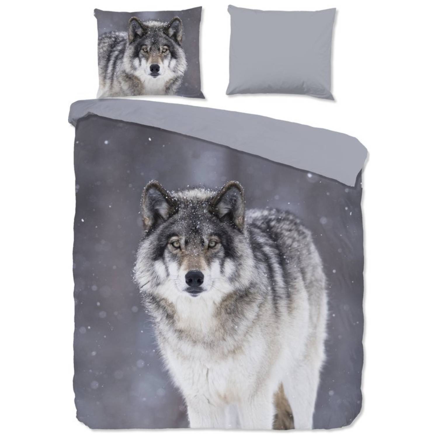 Good Morning Dekbedovertrek Wolf Grijs – 200×200/220 cm – Flanel