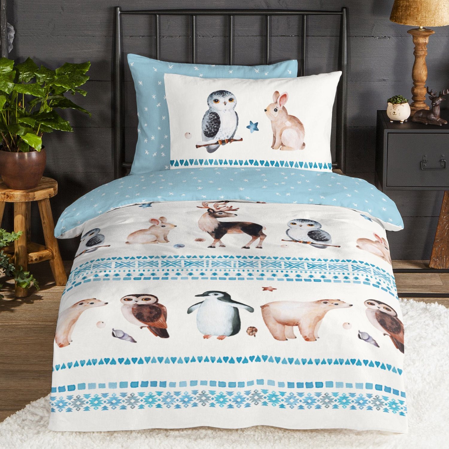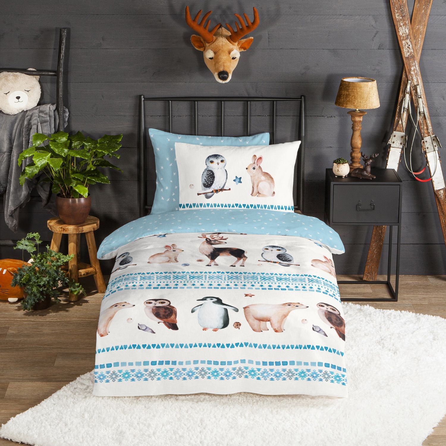 Het Good Morning Freezing kinderdekbedovertrek heeft een speelse print met winterdieren in een frisse blauwe kleur. Het overtrek is gemaakt van 100% katoen/flanel, een licht geruwd materiaal dat een fluweelzacht laagje vormt. Hierdoor voelt het extra warm en knus aan — perfect voor koude nachten en de wintermaanden.