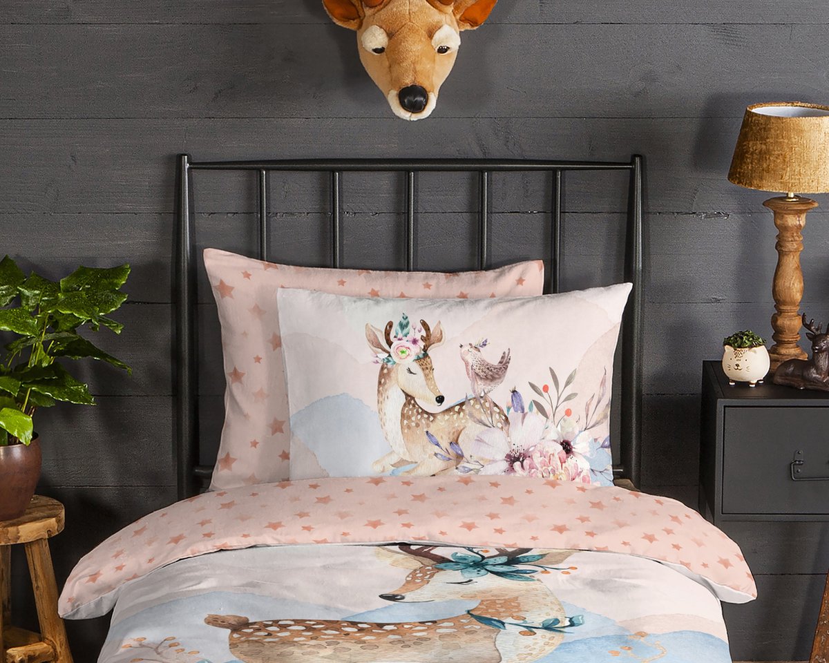 Het Bambi kinderdekbedovertrek is speciaal ontworpen voor 1-persoonsbedden (140×200/220 cm). Voor twijfelaars bieden we een ander duurzaam flanel-assortiment in 200×200 cm.