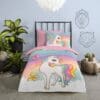 “Mijn dochter is stapelverliefd op de eenhoorn en regenboog. Het dekbedovertrek voelt zacht aan en blijft mooi na elke wasbeurt.”