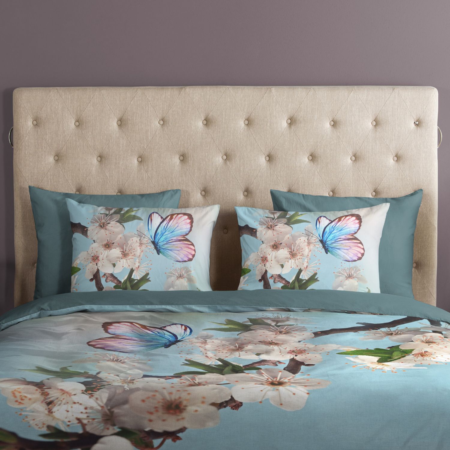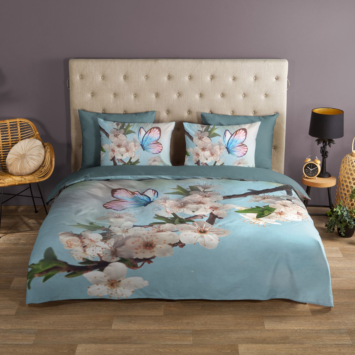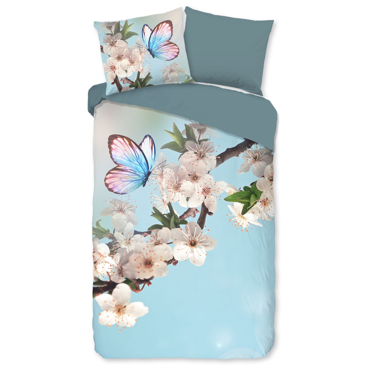 Geef je slaapkamer een frisse en dromerige uitstraling met het Good Morning Mayla dekbedovertrek. Het elegante dessin met bloemen en vlinders in een zachte aquakleur zorgt voor een lichte, vrolijke sfeer en brengt een vleugje natuur in huis. Dit stijlvolle ontwerp fleurt iedere slaapkamer op en past perfect binnen een romantisch, modern of natuurlijk interieur.