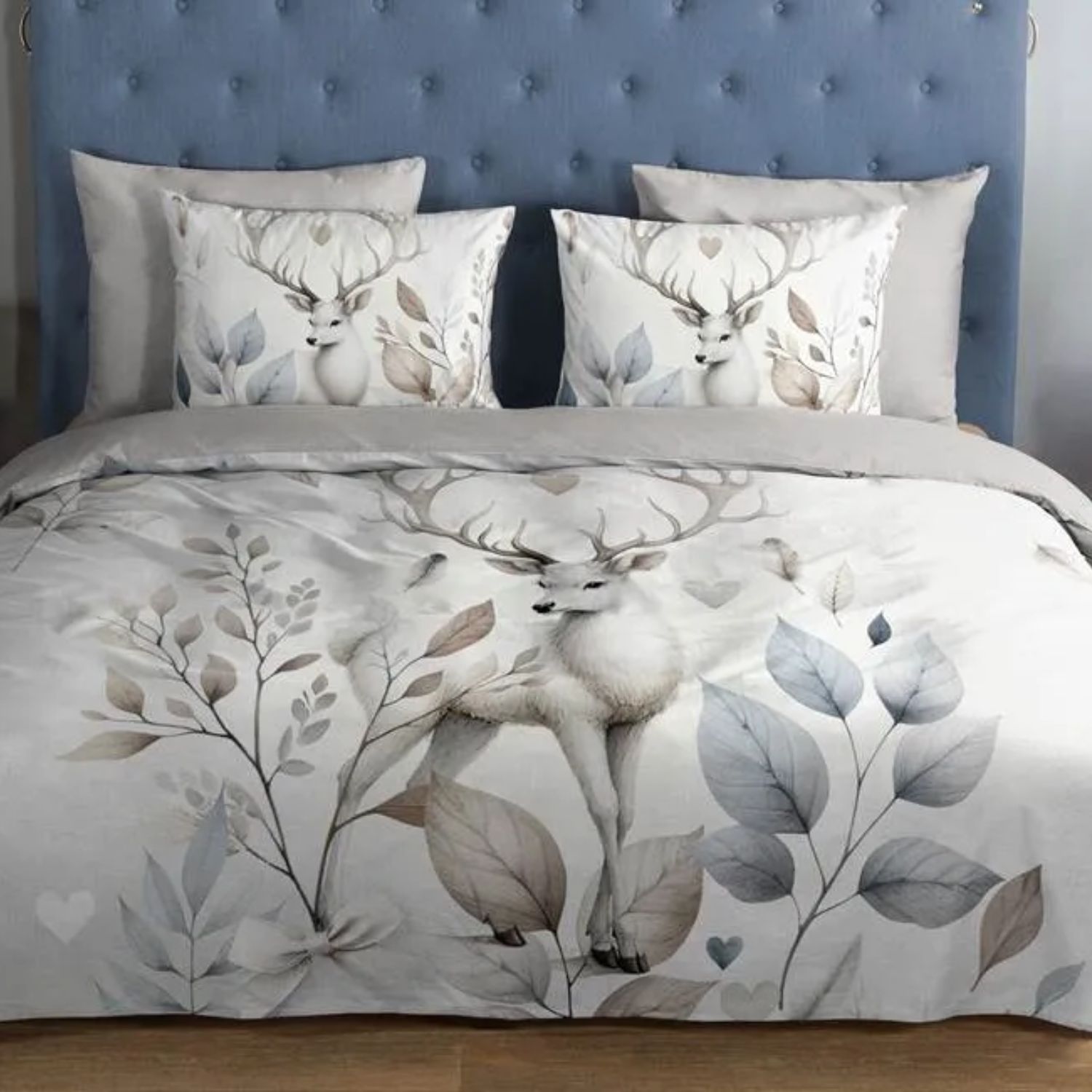Creëer een rustige en sfeervolle uitstraling in je slaapkamer met het Good Morning Norda dekbedovertrek. Het elegante dessin met een winters hert en verfijnde bladeren in een zachte ecru tint brengt een warme, natuurlijke ambiance in de slaapkamer. Dit tijdloze ontwerp past perfect binnen een landelijk, Scandinavisch of rustiek interieur en zorgt voor een knusse uitstraling, zonder te overheersen.