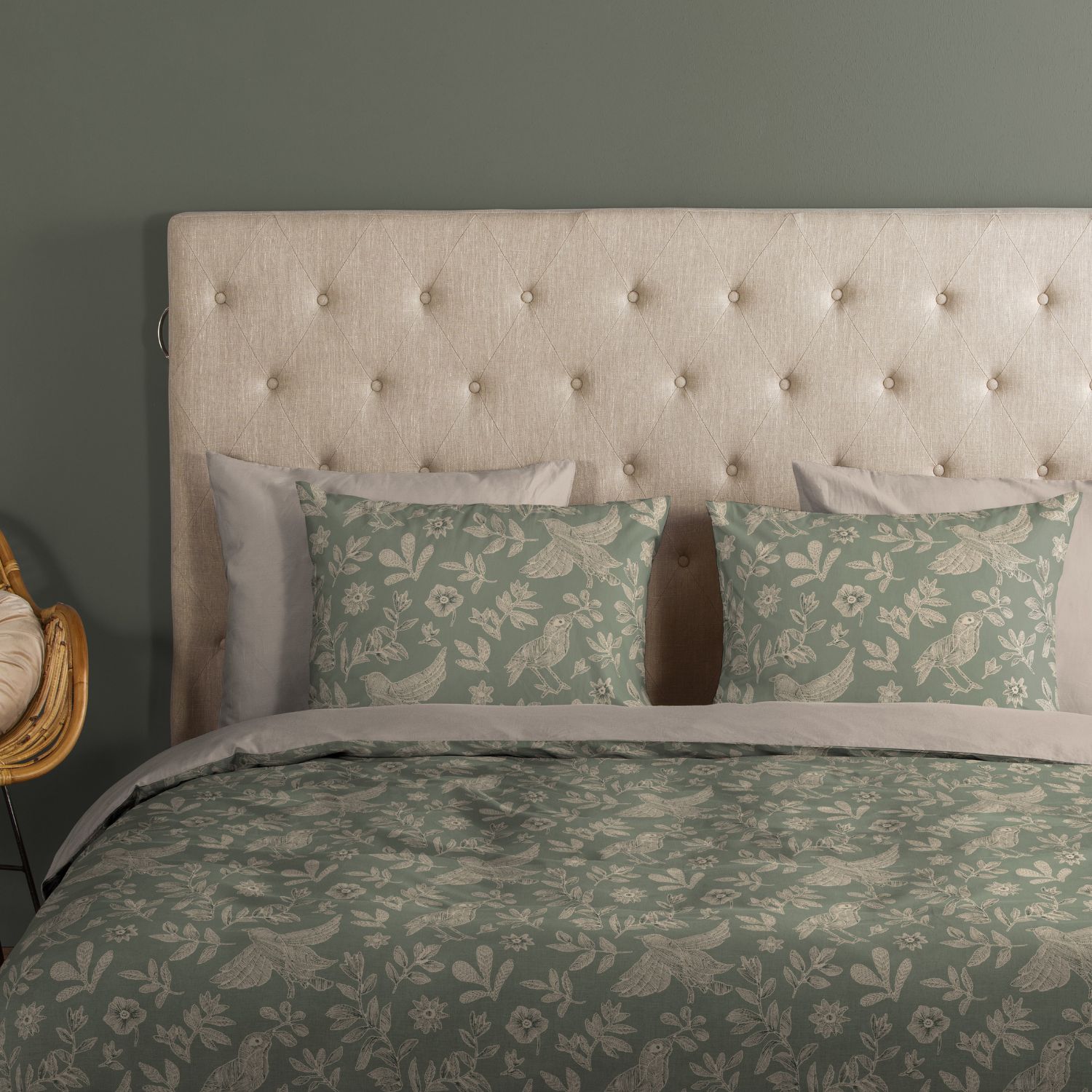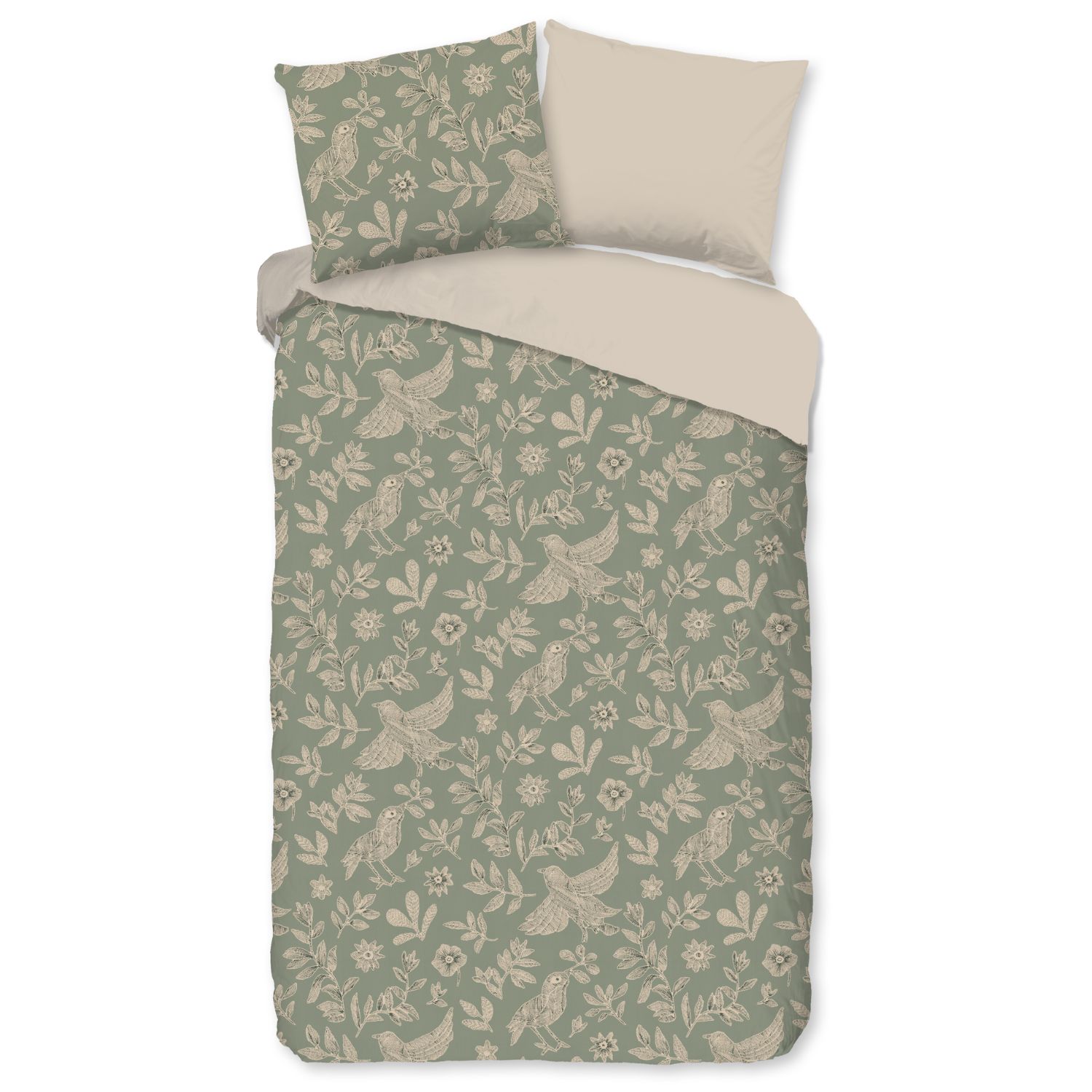 Het Good Morning Odette dekbedovertrek heeft een prachtig dessin met bladeren en vogels in sfeervolle groentinten. Het ontwerp geeft de slaapkamer een frisse, natuurlijke uitstraling en past goed in diverse interieurstijlen. Het dekbedovertrek is gemaakt van 100% katoen, waardoor het ademend, vochtabsorberend en heerlijk zacht aanvoelt. Dit zorgt voor een comfortabele nachtrust in elk seizoen: koel in de zomer en warm in de winter.