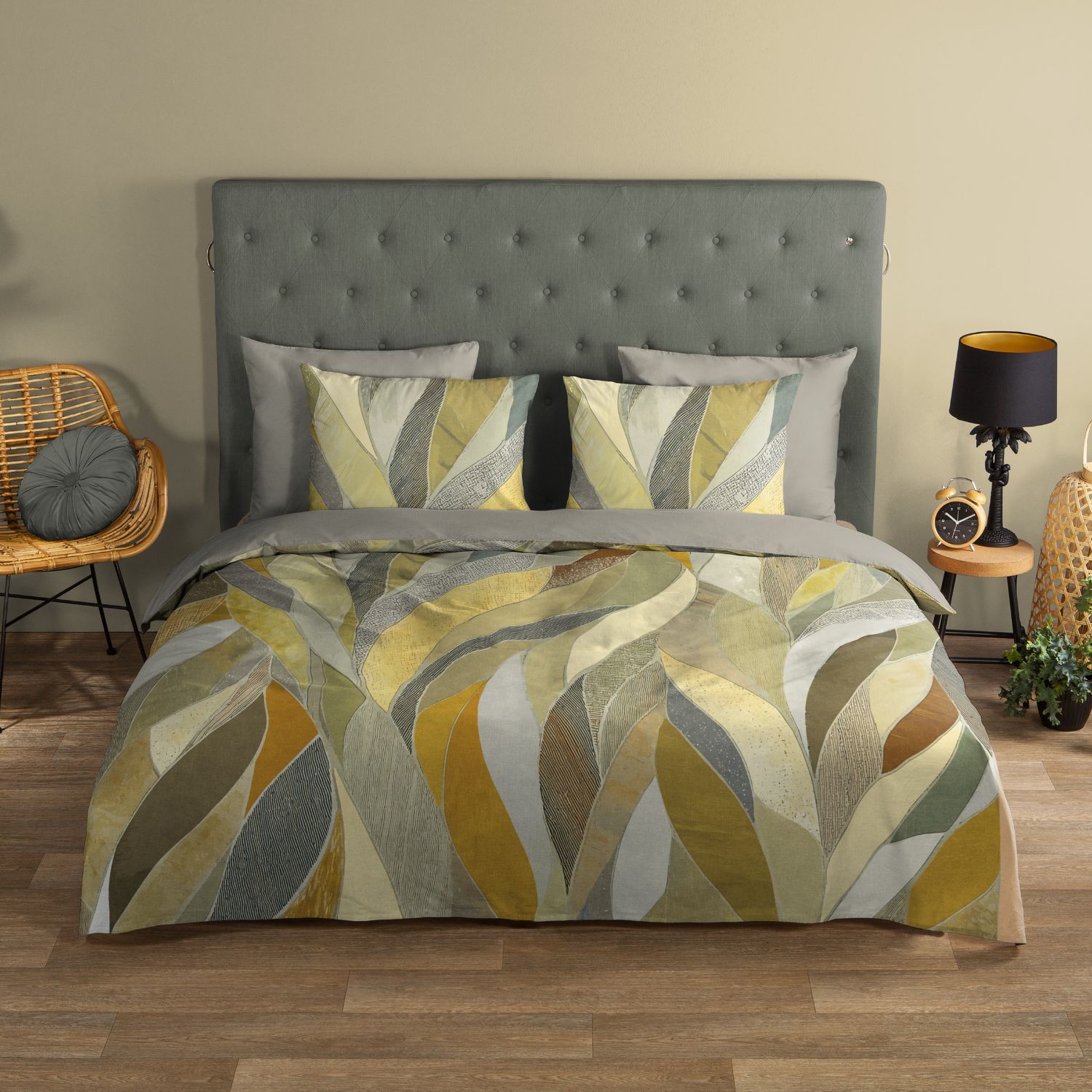 Het Good Morning Yellowstone dekbedovertrek heeft een modern dessin met abstracte bladeren in rustgevende grijstinten. Gemaakt van 100% ademend katoen biedt het comfortabel slaapcomfort in elk seizoen. De dubbele instopstrook en lengte van ca. 240 cm zorgen dat het overtrek stevig blijft zitten. Oeko-Tex gecertificeerd, wasbaar op 40°C en geschikt voor de droger.