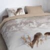 Creëer een warme en gezellige sfeer in de slaapkamer met het Good Morning Flanellen Dekbedovertrek Winter. Dit zandkleurige overtrek is voorzien van een sfeervolle print van herten in een winterlandschap, waardoor het perfect past bij de knusse wintermaanden.