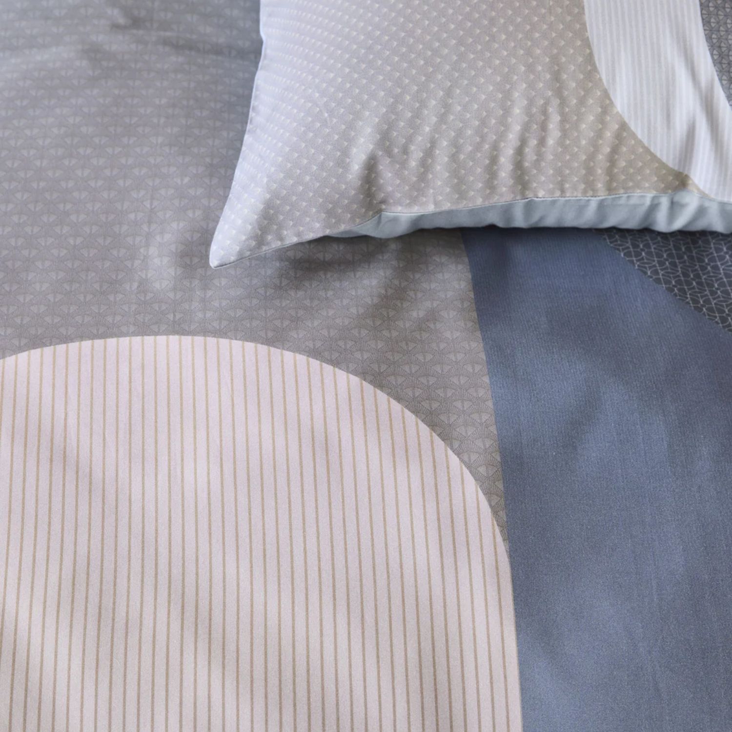 Kardol Archi Dekbedovertrek Blauwgrijs Met het Kardol Archi dekbedovertrek geef je jouw slaapkamer direct een luxe en moderne uitstraling. Het overtrek heeft een elegante grafische print in zachte, warme tinten. De ronde vormen overlappen elkaar subtiel en zorgen voor een chique en stijlvolle look. De achterzijde is effen blauwgrijs, waardoor je makkelijk een rustige omslag kunt maken.
