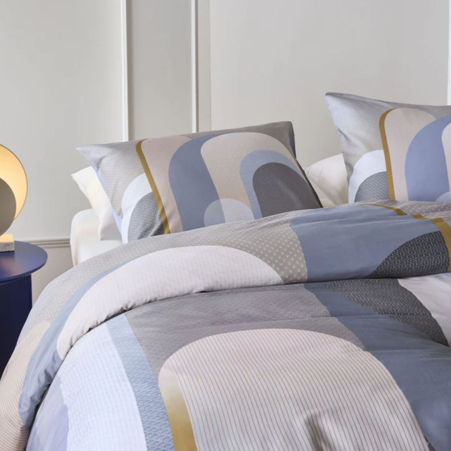 Het Kardol Archi dekbedovertrek blauwgrijs heeft een luxe grafisch dessin met een effen achterzijde. Gemaakt van 100% katoen-satijn 220 TC voor een zachte touch, subtiele glans en optimaal slaapcomfort. Met dubbel doorlopende instopstrook, wasbaar tot 60°C en geschikt voor de droger.