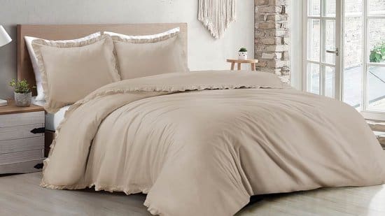 Geef je slaapkamer een elegante en sfeervolle uitstraling met dit luxe dekbedovertrek met roesjes. De subtiele details en tijdloze stijl maken dit overtrek eenvoudig te combineren met verschillende interieurstijlen. Gemaakt van 100% zacht katoen, voelt het heerlijk comfortabel aan en zorgt het voor een fijne, rustgevende nachtrust.