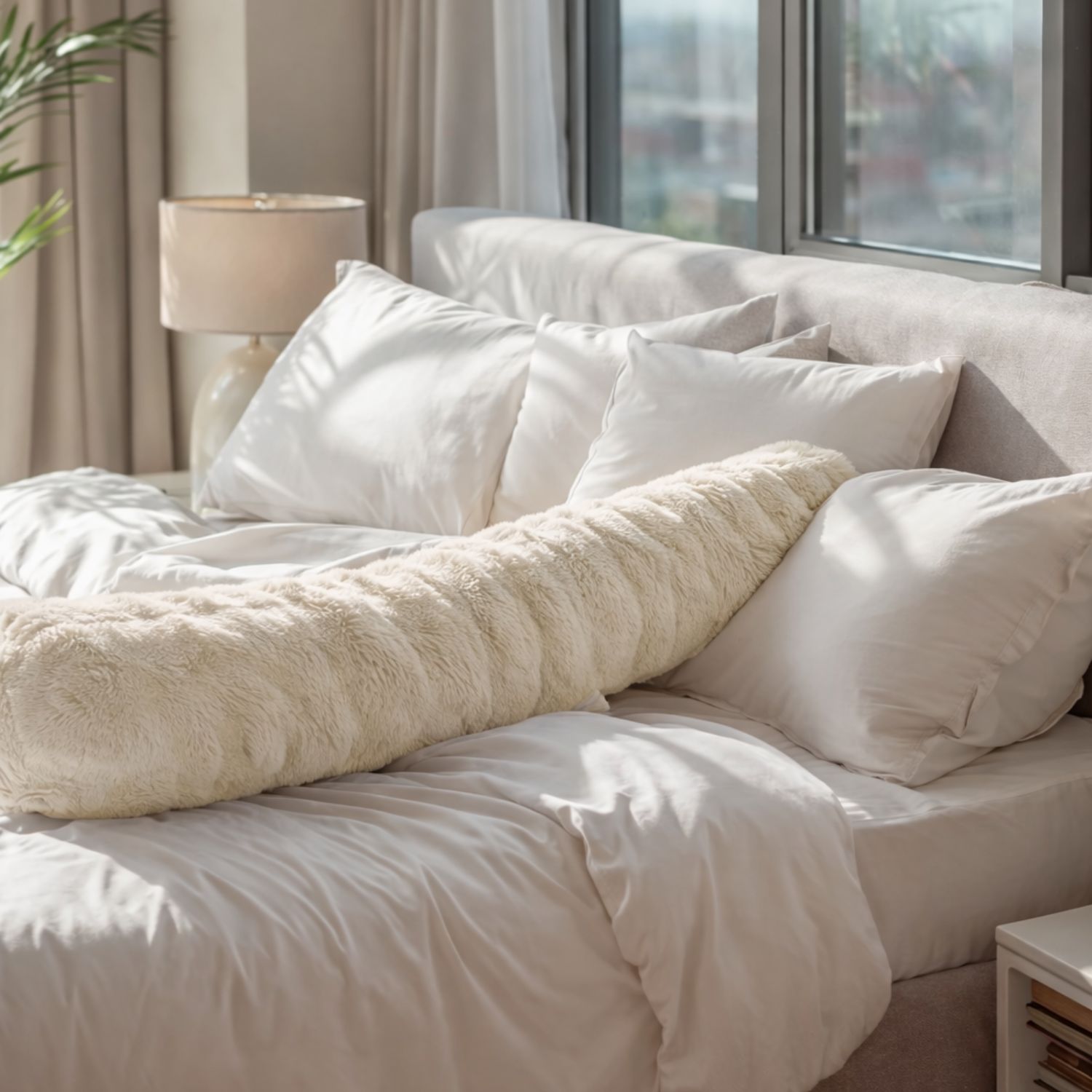 De Bodypillow Pompom 140 x 20 van Primaviera Deluxe biedt luxe comfort en stevige ondersteuning voor het hele lichaam. De ultrazachte faux fur stof voelt heerlijk warm aan en maakt ontspannen en slapen extra comfortabel. Ideaal voor zijslapers en iedereen die houdt van een knusse, ondersteunende bodypillow.