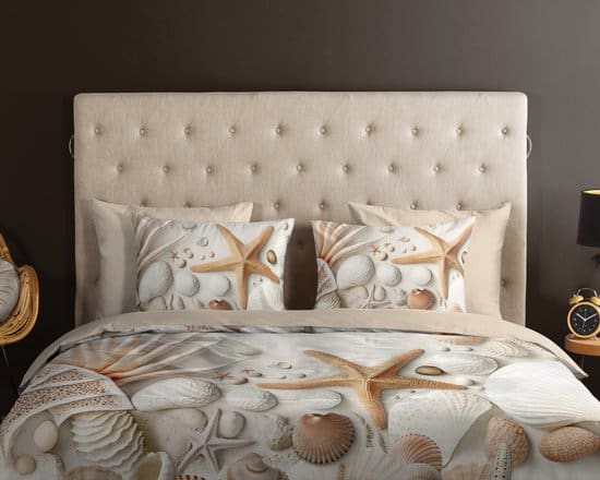 Breng het vakantiegevoel naar je slaapkamer met het Cote dekbedovertrek van Good Morning. Dit prachtige overtrek in zachte zandtinten is voorzien van een sfeervol dessin met zeesterren en verschillende schelpen. De natuurlijke kleuren en het rustige patroon zorgen direct voor een ontspannen, strandachtige sfeer in de kamer. Alsof je met je blote voeten door warm zand loopt en de zilte zeelucht opsnuift – elke avond opnieuw. De achterzijde van het overtrek is effen van kleur, wat zorgt voor een rustige uitstraling en de mogelijkheid om het bed strak of juist speels op te maken. De bijbehorende kussenslopen zijn dubbelzijdig bedrukt, waardoor je makkelijk kunt variëren en jouw eigen stijl creëert.