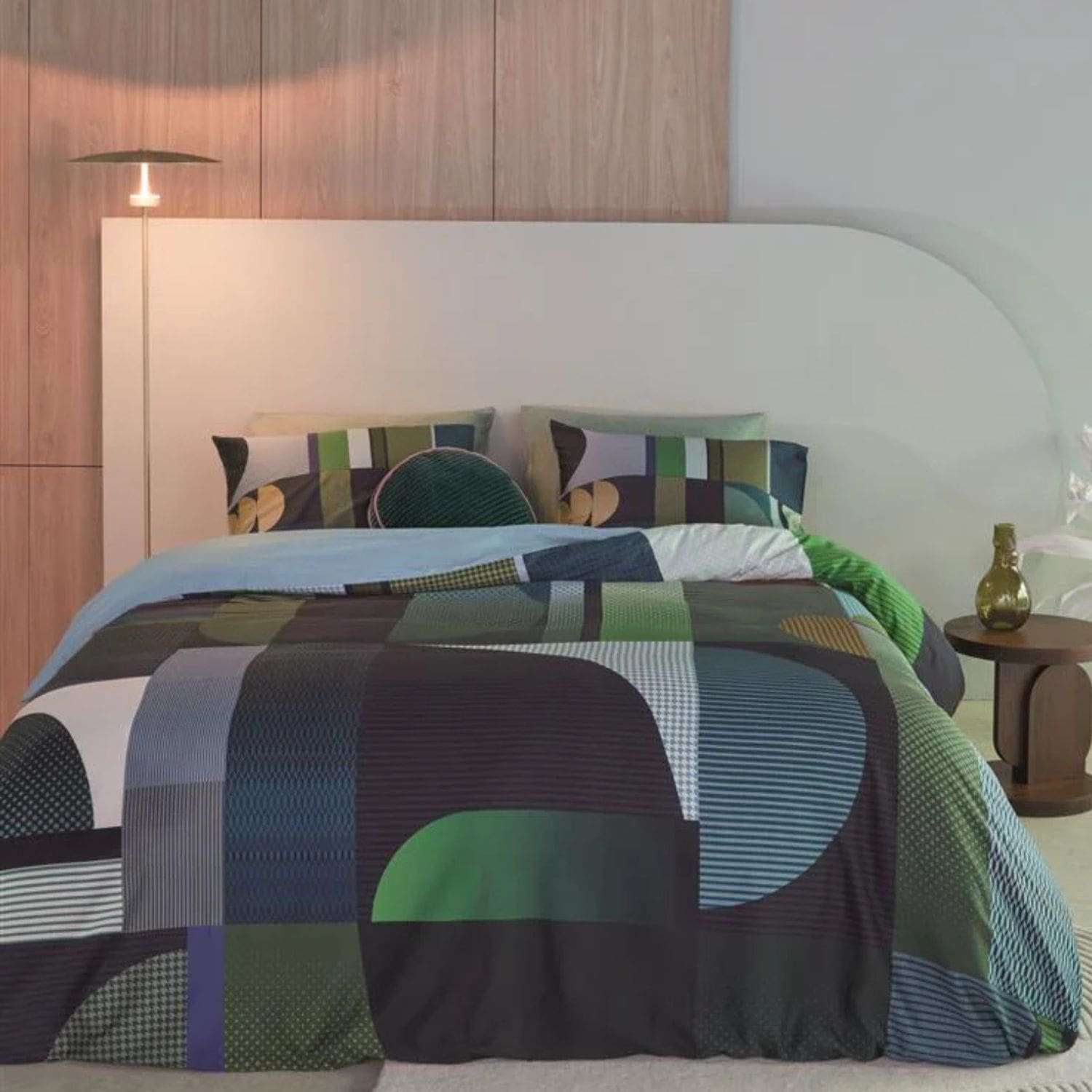 Dekbedovertrek Utopia van Kardol is een prachtig dessin waarbij grote vlakken en ronde vormen opgevuld zijn met fijne motieven. De frisse kleuren van het overtrek geven het dessin, en daarmee ook meteen de slaapkamer, extra pit. Door het gebruik van 100% katoensatijn voelt het overtrek zacht aan en heeft het een mooie glans. De achterzijde van het overtrek en de kussenslopen zijn effen groen.