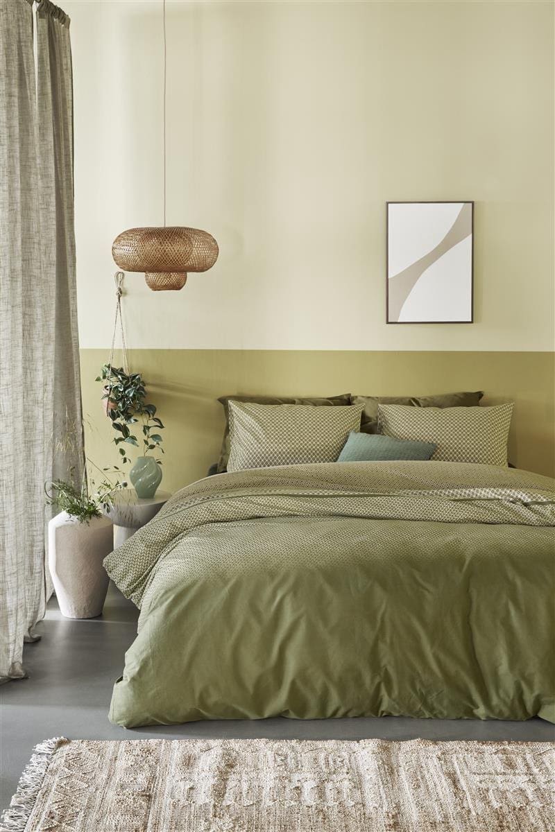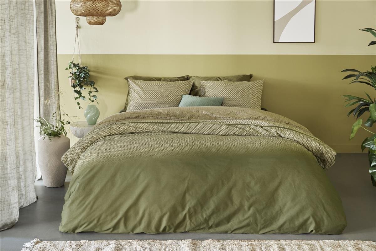 Het Beddinghouse Jimmy dekbedovertrek geeft je slaapkamer een frisse, moderne uitstraling. Het ontwerp bestaat uit vier banen, waarvan drie met subtiele grafische motieven en één met een zacht kleurverloop. De harmonieuze mix van groentinten, olijfgroen, lichtgroen en mosterdgroen zorgt voor een eigentijdse en stijlvolle sfeer. Gemaakt van 100% katoen, biedt het dekbedovertrek ademend comfort voor een ontspannen nachtrust. Dit ontwerp is tevens beschikbaar in verschillende kleurstellingen.Duurzame verpakking - Het dekbedovertrek is mooi en duurzaam verpakt in een stoffen tasje gemaakt van hetzelfde materiaal als het overtrek. Je kunt het tasje eenvoudig hergebruiken.Over Beddinghouse - Beddinghouse is een Nederlands familiebedrijf dat gespecialiseerd is in het ontwerpen van trendy en stijlvol beddengoed. Elk seizoen bieden we een uitgebreide collectie dekbedovertrekken in prachtige kleuren, gemaakt van hoogwaardige materialen.Ons Assortiment - Bij Beddinghouse vind je niet alleen dekbedovertrekken, maar ook bedspreien, moltons, hoeslakens en badtextiel. Onze producten combineren stijl met comfort en duurzaamheid.Waarom Beddinghouse? - Innovatief Design: Altijd volgens de laatste trends.Hoogwaardige Kwaliteit: Duurzame en comfortabele materialen.Groot Assortiment: Voor iedere smaak een passend product.Hoogwaardige kwaliteitHet dekbedovertrek is gemaakt van 100% katoen, 144 TC. Het overtrek heeft over de gehele breedte aan beide zijden een dubbele instopstrook. De totale lengte van het dekbedovertrek is 250 cm. Dit is extra lang waardoor het dekbedovertrek gemakkelijk onder het matras gestopt kan worden en koude voeten worden voorkomen. Het overtrek is geschikt voor dekbedden van 200 cm, 210 cm of 220 cm. Better CottonDoor katoenproducten te kiezen van ons, steunt u onze investering in de missie van Better Cotton. Dit product is ingekocht via een mass balance systeem en bevat daardoor mogelijk geen Better Cotton. Zie bettercotton.org/learnmore.