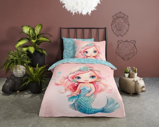 Heb je ooit ’s ochtends een bleek gezichtje naast je bed aangetroffen, omdat je kindje zich niet lekker voelde in zijn of haar dekbedovertrek? Of werd je gewekt door gekriebel en gesnurk omdat de stof te warm of te stug was? Met het kinderdekbedovertrek Allise til je de nachtrust van je kind naar een hoger niveau. Dit luxe, duurzame en professionele dekbedovertrek combineert oogstrelend design in zachte roze- en aquatinten met de beste kwaliteit 100% katoen. Kortom: het ideale bedlinnen hotelkwaliteit voor elke kinderkamer.