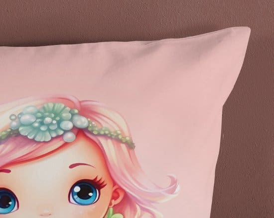 Het kinderdekbedovertrek Allise in roze met aqua voegt direct sfeer toe aan elke kinderkamer. Of je nu kiest voor een Scandinavisch interieur of een klassieke kinderkamer: de zachte pastelkleuren passen overal bij. De subtiele glans van satijnaccenten geeft net dat vleugje luxe waar jij en je kind van dromen.