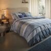 Droom heerlijk weg onder het stijlvolle Beddinghouse Marthe dekbedovertrek. Het dessin bestaat uit een modern banenpatroon in rustgevende blauw- en aardetinten. Van dichtbij zie je subtiele grafische details die het geheel een eigentijdse en speelse twist geven. Dankzij dit rustige kleurpalet past het dekbedovertrek moeiteloos in diverse interieurstijlen.